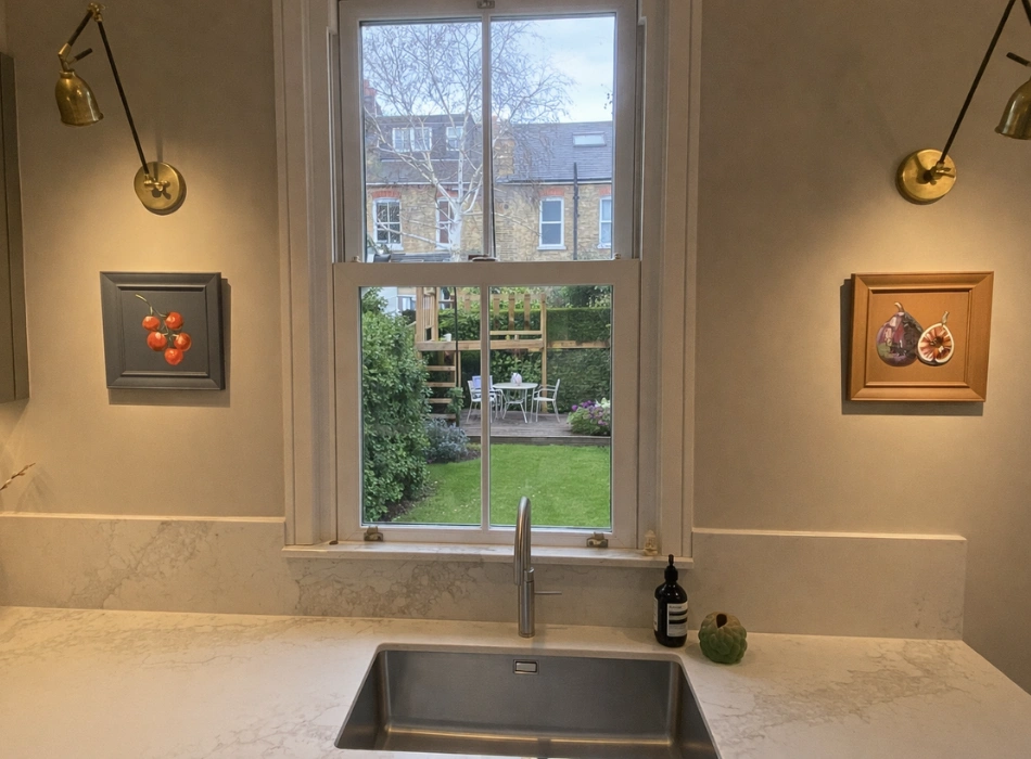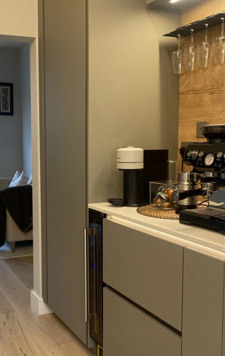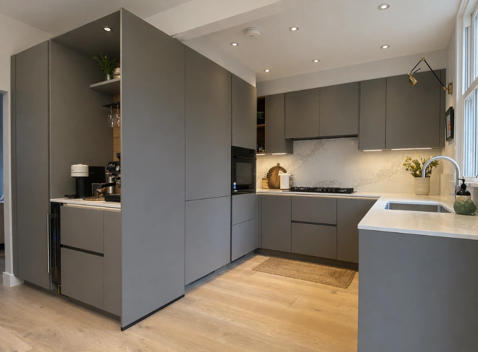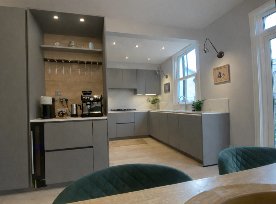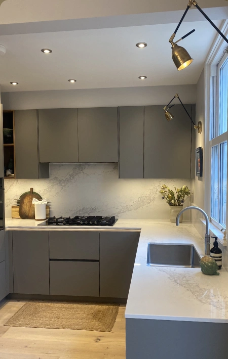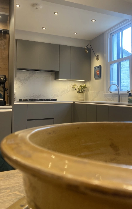 We carefully preserved the home’s original character and traditional features, celebrating its timeless charm, while thoughtfully introducing a modern kitchen designed for today’s lifestyle. We chose a soft taupe, grey, and beige colour palette to maintain warmth and elegance throughout.